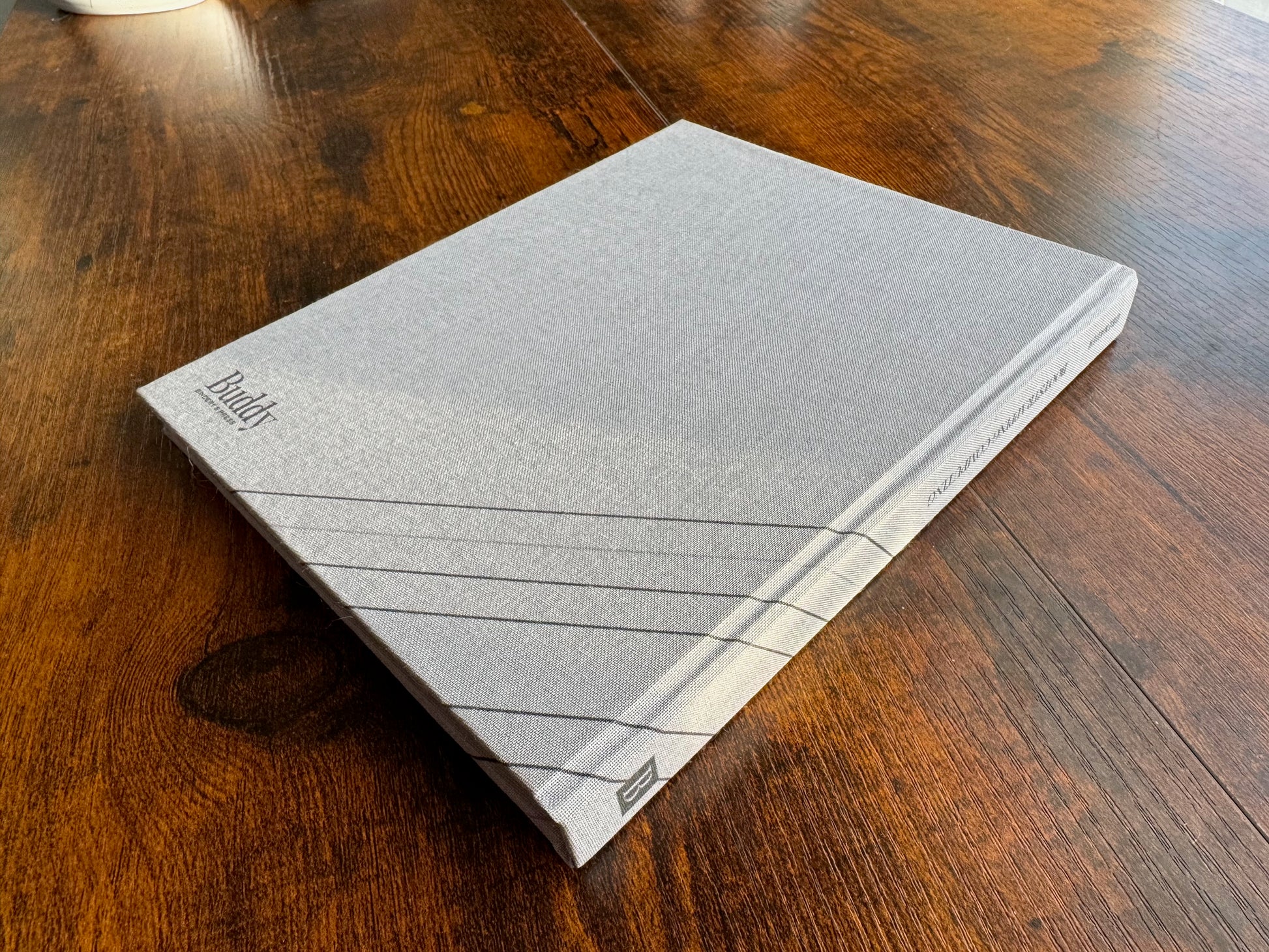 Cover: Hard case (2.5 mm boards) wrapped in smoke grey book cloth